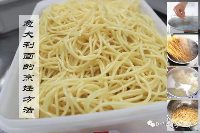 披萨和意大利面是一家披萨店最为常见的搭配了,所以意面的制作也是十分要紧的事情。煮面是第一步,煮面锅要够大,水量要够多,而且火力要旺(水要保持滚沸),煮制的过程中还要多进行搅拌。同时水里要加盐和橄榄油(意大利面会更弹韧、更入味、不粘黏),放盐的比例大概是1升水5-10g盐,橄榄油的话,加入3-5ml即可。