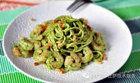 2. 青酱:以罗勒、松子粒、大蒜、橄榄油等制成的酱汁,坚果油脂和香草的混合口感比较浓郁独特。