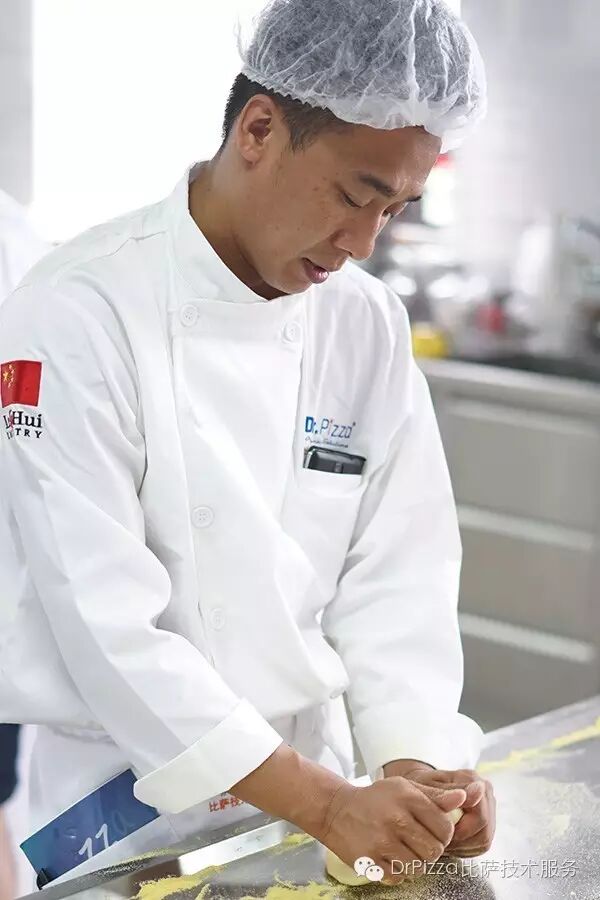 而进出实训厨房时,每一个人都必须穿戴整齐,统一的学员服,统一的卫生帽,一切都严格按照店面厨房的操作流程而来,要想学到真正的披萨技术,从和面开始,就要分组进行,就必须全面动手,全面实操。