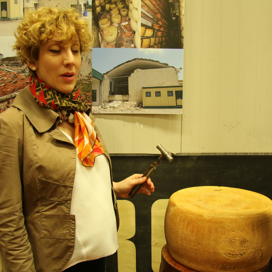 其实它在成熟初期就要接受官方检验,淘汰率是非常高的。而检验干酪品质的方法非常传统,遵循着传统的工艺检验制度,检验专员会借助一个小锤子去来回敲击奶酪的全身,根据声音和敲击的质感来判断。