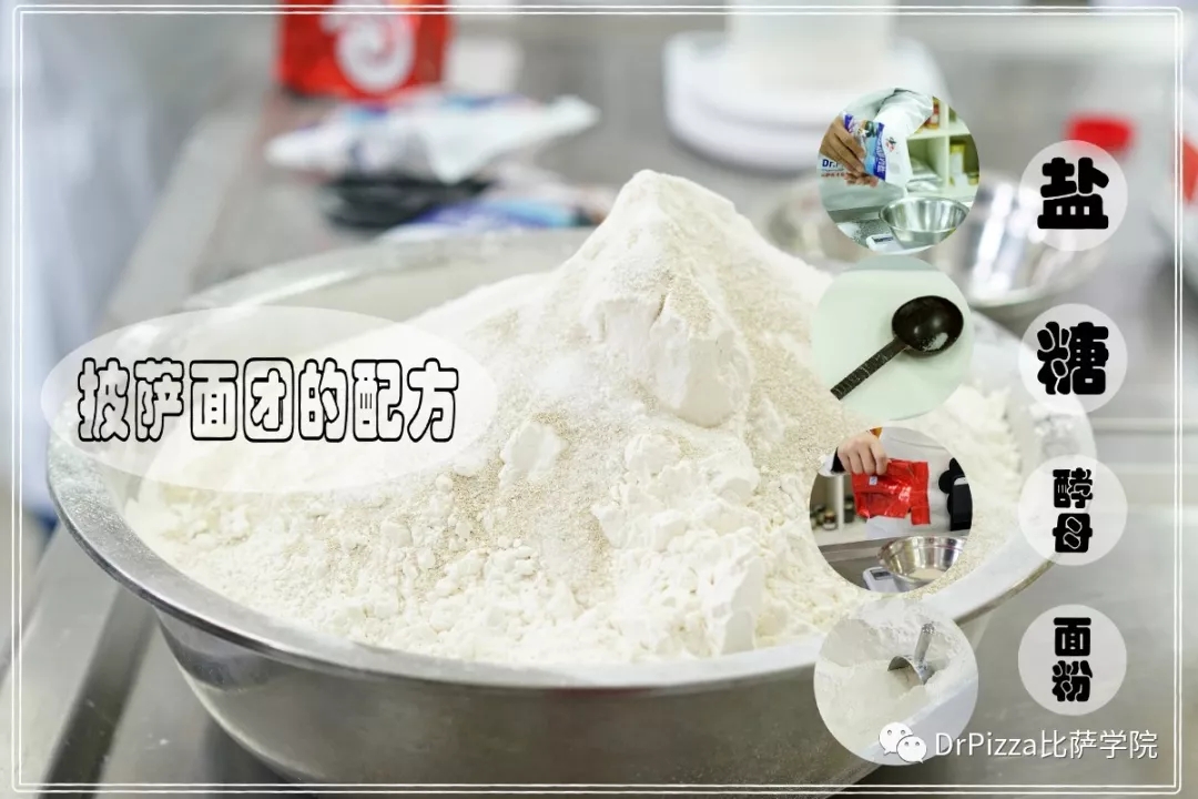 披萨面团和面配方的学习是最基础关键的。而和面所需的基础原料都是比较常见的,比如面粉、酵母、水、油、盐和糖。而每一个基础成分的选择、各成分的配比都是非常关键的,都影响着最终的面团品质。